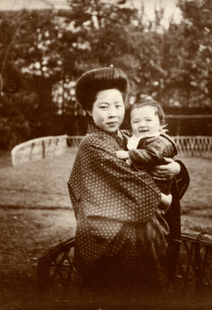„Liebste Mama, ich kann nicht anders, ich muß mir etwas von der Seele wegschreiben, was mich schon lange drückt. Wie das alles gekommen ist, kann ich Dir nicht sagen. Aber ich habe eine liebe kleine Japanerin lieb gewonnen + wir haben zusammen gelebt + dann ist am 28. Juni in diesem Jahre mein kleiner Junge gekommen, Karl Yoshiyasu, den ich so unendlich lieb habe. Und wenn Du ihn sehen könntest, würdest Du ihn auch nicht von Dir weisen. Er ist so strahlend gesund + vergnügt + hat so süße schwarze Äugelchen, daß man ihn lieb haben muß. Wenn er seinen Papa sieht, jauchzt er ihm entgegen. Er bekommt jetzt zwei Zähnchen, und ist trotzdem so freundlich und ruhig. Ich denke so manchmal, wenn Du ihn doch mal sehen könntest, dann würdest Du gewiß vergessen, was um ihn gefehlt ist + würdest meine zärtliche Liebe für das süße Kerlchen gutheißen. Und so will ich mich denn am Weihnachts-Abend in den freundlichen Gedanken hineinversenken, daß auch Du, Mama, an mich + mein Kind in Liebe + mit Vergebung denkst. Daß ich mein Kind, sobald es größer wird + den Schutz eines rechtschaffenen Namens braucht, anerkennen werde, versteht sich von selbst. Ich bin auch überzeugt, daß sich ein liebendes Herz ihm + seinem Vater öffnen wird, wenn er in die Jahre kommt, wo seine Erziehung zum tüchtigen, fleißigen Menschen beginnen muß. Vorläufig bleibt er + seine Mutter bei mir + unter meinem Schutz.