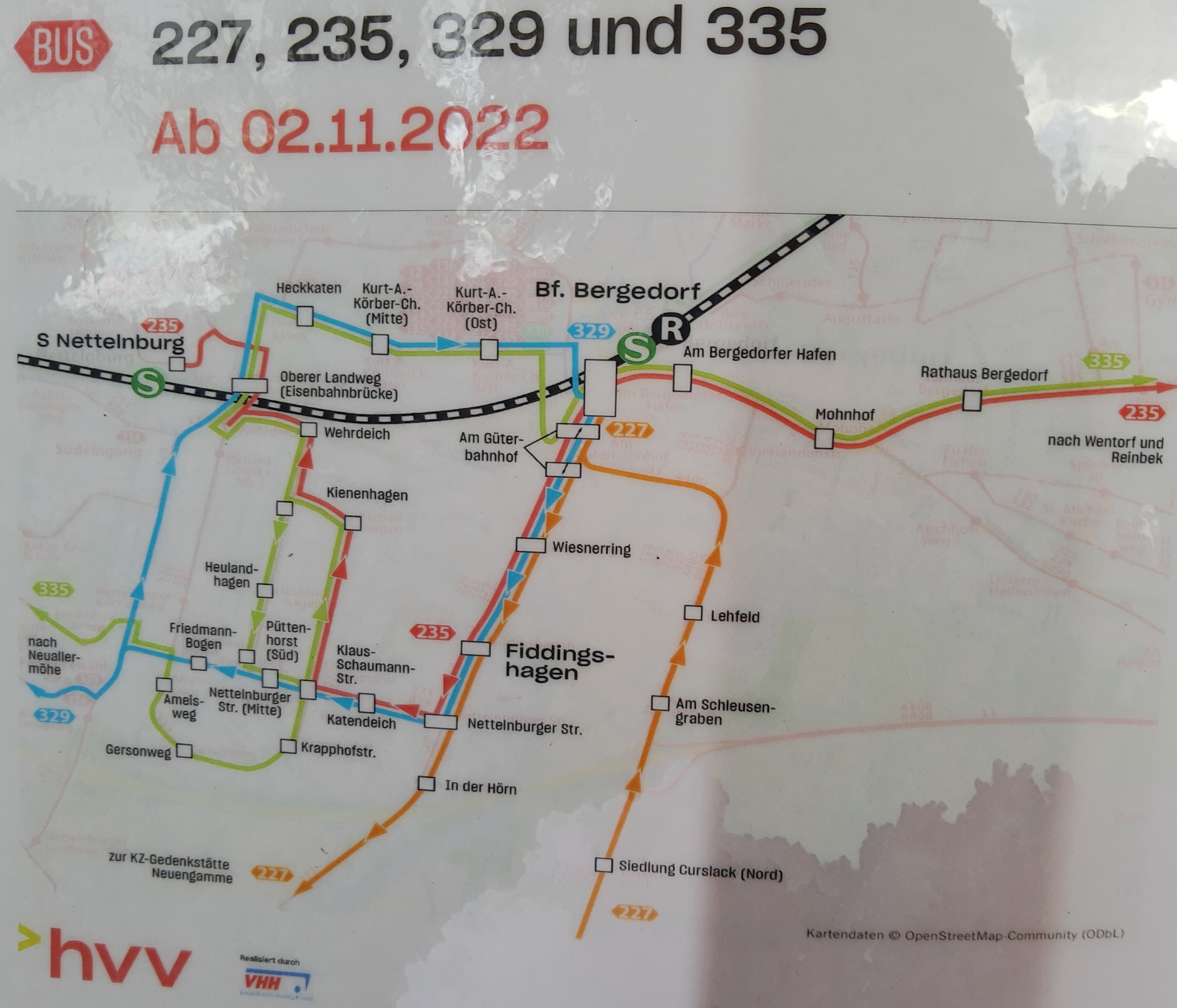 - Die Fahrplanauskunft des HVV leitet einen mit dem Bus oft erst zu S-Bahn Nettelnburg, und anschließend mit der S-Bahn nach Bergedorf!!! (Kein Witz!, auch wenn es so klingt.) Die Fahrzeit wird dadurch extrem verlängert.