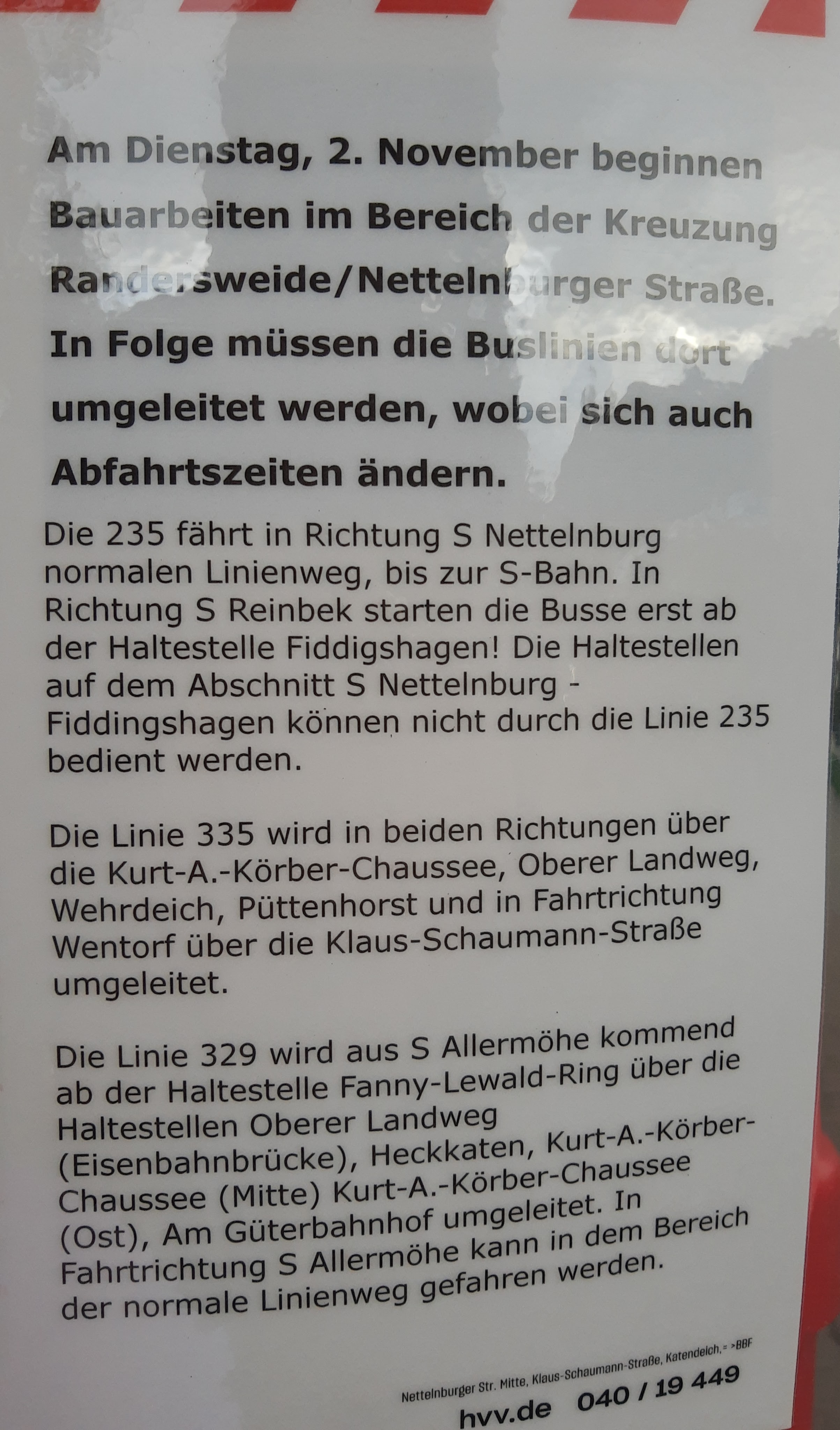 Erst kam Corona mit all den Lockdowns und Einschränkungen, kaum war das glücklich und vor allem gesund überstanden, kam die Sanierung des Bergedorfer Busbahnhofs wieder mit jeder Menge Einschränkungen und Umstellungen, vor allem bei den Haltepunkten für die Busse. Jetzt kommt der Kreisel an der Nettelnburger Straße/ Randersweide – nach mehreren Jahren Planungszeit!!!
