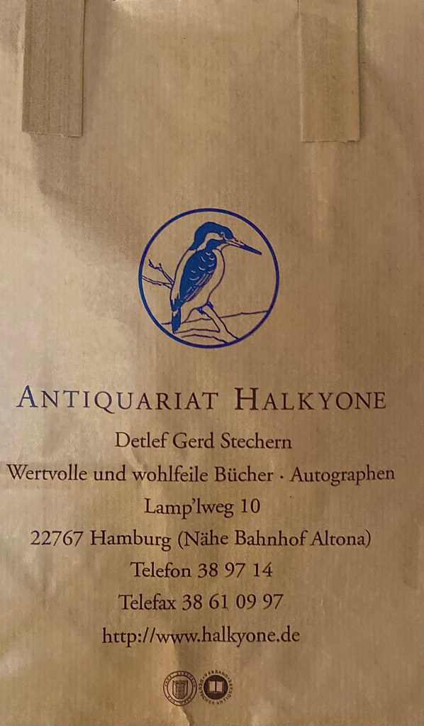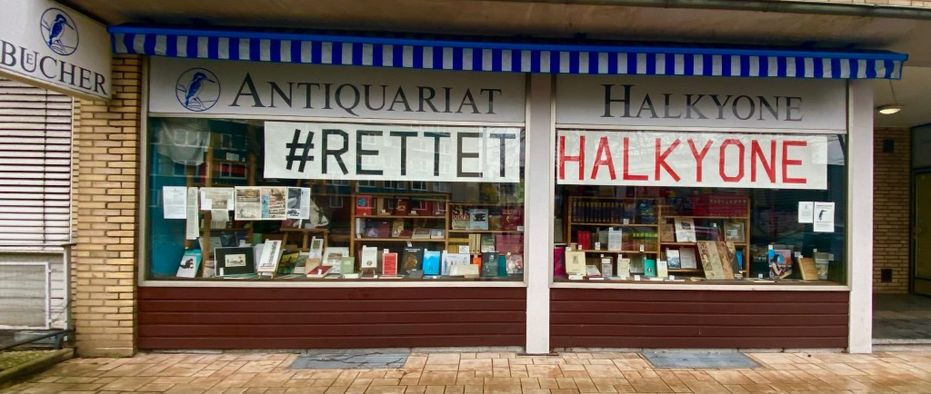 „Wertvolle und wohlfeile Bücher“ im Antiquariat HALKYONE in Altona-Altstadt wird es im April 2023, nach 27 Jahren nicht mehr geben. Die Redensart „Halkyonische Tage“ steht für Innehalten in turbulenten Zeiten.