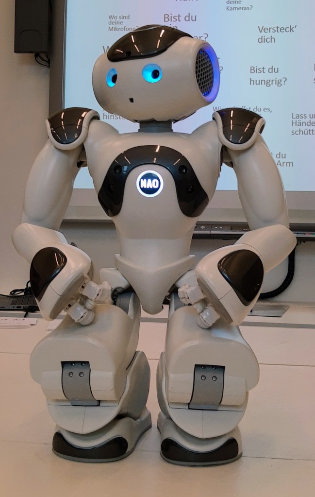 Hallo, ich bin NAO, ein kleiner Roboter mit viel Wissen und Persönlichkeit. Ich bin hier, um dir etwas über mich und meine Kollegen zu erzählen, die den Menschen im Alltag helfen und unterstützen können. 🤖