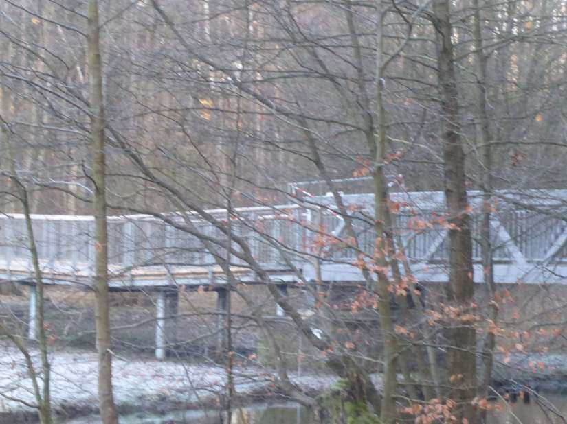 Die marode Brücke, die man besser ganz schnell passierte, wackelig und immer wieder mit Holzlatten ausgebessert. Jetzt passt sie zum Zeitgeist. Geländer aus Alu. Von der Hamburger Seite. Die Aussichtsplattform, von der aus man Tier- und Pflanzenwelt betrachten kann, bekam wieder Holzbohlen. Ebenso dieses Stück der Brücke nach Reinbek. Die Kosten für dieses so heiß ersehnte Bauwerk teilten sich Hamburg und Reinbek.