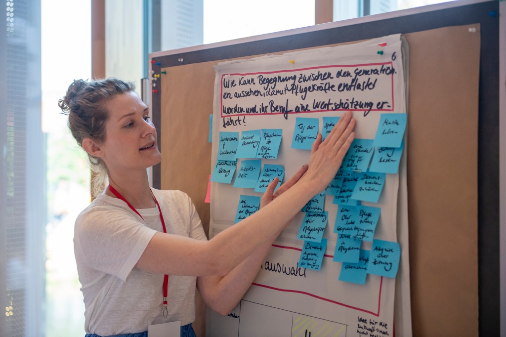 Nicht Theorie, sondern Praxis war gefragt. Und es war schön zu sehen, wie intensiv diskutiert wurde. Dabei wurde jede Gruppe von einer Moderatorin oder einem Moderator unterstützt, fachliche Hinweise wurden gegeben und finanzielle Angebote gemacht. Dass da ohne Scheu generationsübergreifend geplant wurde, lag sicher auch an den auflockernden kleinen Spielen und Kurzvorträgen. Sogar während der Mahlzeiten ging der Austausch weiter – eine wirklich inspirierende Atmosphäre.