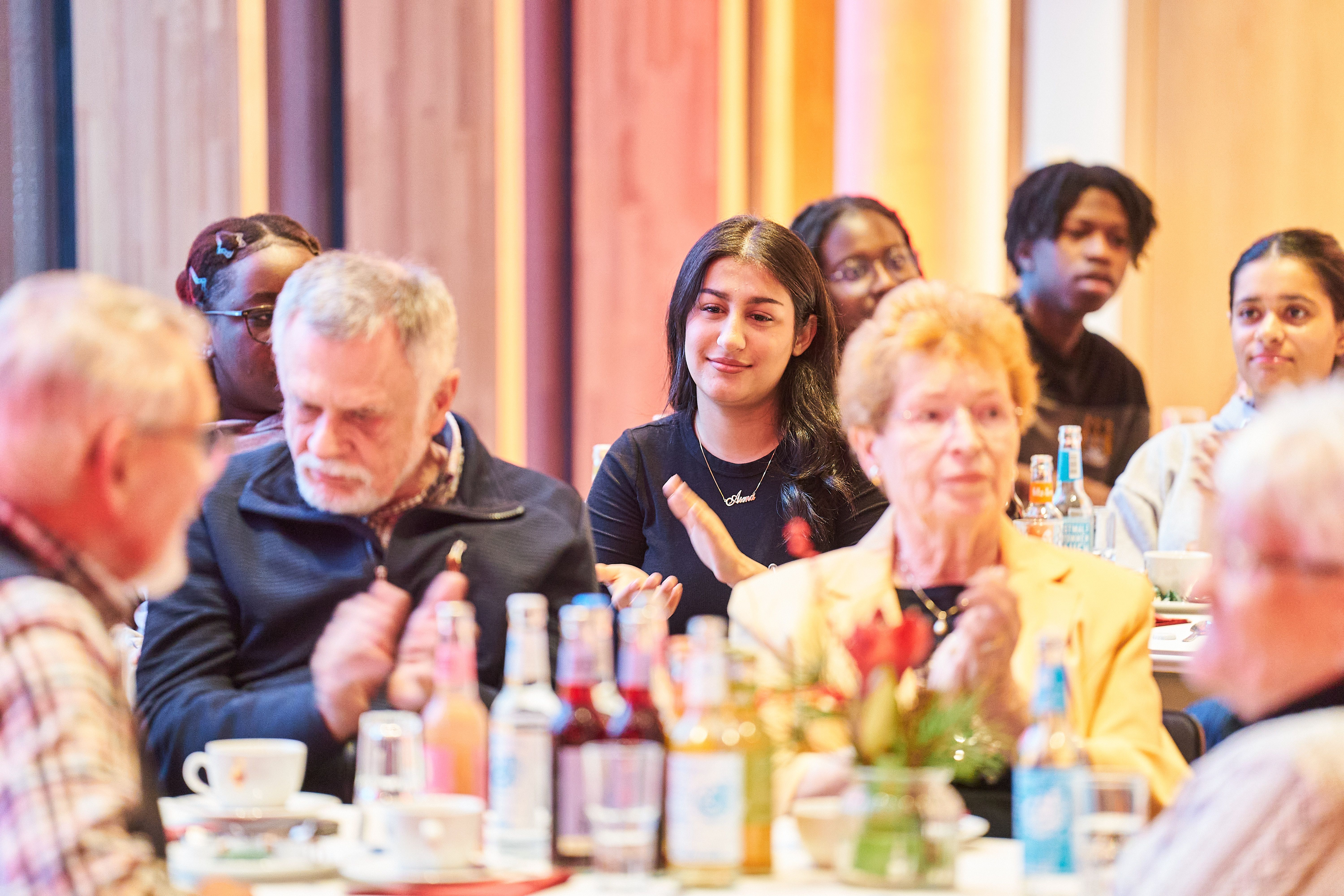 Auch die 24 Schülerinnen und Schüler der Klasse 12s aus der Stadtteilschule Bergedorf waren mit ihrer Lehrerin dabei. Von Anfang an hatten sie an der Generationenwerkstatt teilgenommen und sind mittlerweile in zwei Gruppen aktiv.