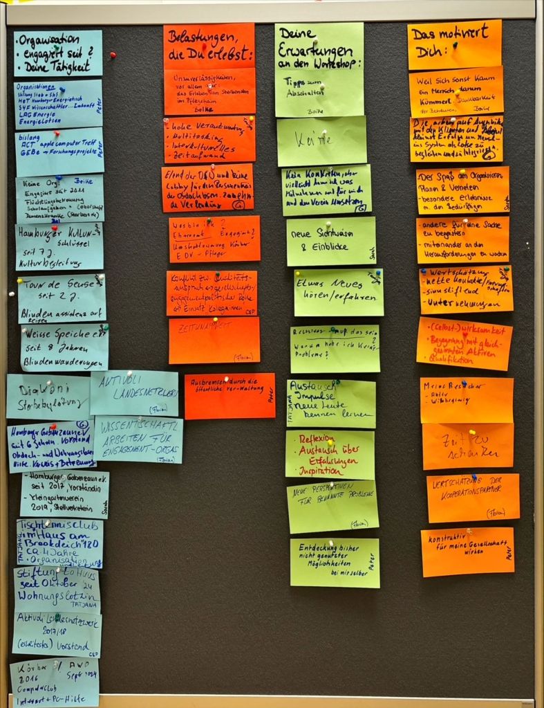 Und das nicht nur in der Seniorenberatung oder der AWO, der Leselernhilfe und der Schülerhilfe, da wurden Organisationen genannt, von denen ich noch nie gehört hatte: Hamburger Energietisch HET, der sich für die Umsetzung der Energiewende in Hamburg einsetzt. Wissenschaftler für die Zukunft S4F, die Klimawandel und Umweltbelastung erforschen. Hamburger Kulturschlüssel, der Menschen mit und ohne Behinderung zusammenbringt. Stiftung to Huus, die Geflüchteten bei der Wohnungssuche hilft, Blindenassistenz und Fürsorge für Obdach- und Wohnungslose. Aber ebenso in einem Tischtennisclub, einem Computerclub, einer PC-Hilfe stellen Ehrenamtliche Zeit und Wissen zur Verfügung.