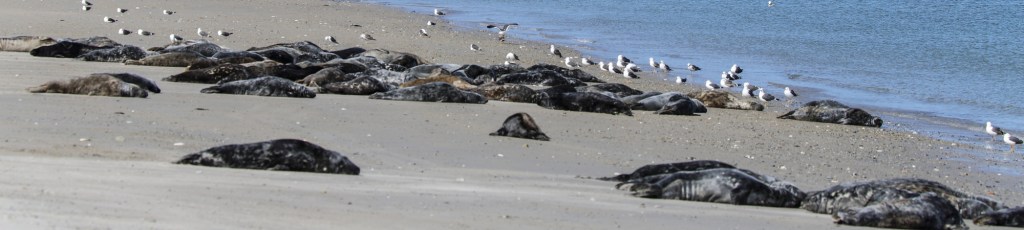Genau wie meine Tochter und ich beobachten sie zum Beispiel die vielen Seehunde und Kegelrobben, die sich entspannt in einer kleinen Bucht ausruhten. Tatsächlich hatte ich anfangs Mühe, sie vom Felsvorsprung aus zu entdecken, denn sie unterschieden sich auf den ersten Blick kaum von den großen, grauen, flachen Steinen, zwischen denen sie lagen.