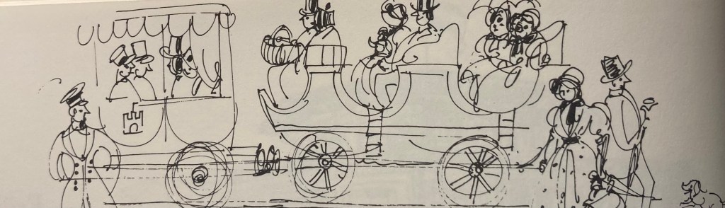In einigen Wagen 2. Klasse gab es sie auch, aber üblich waren hier lederne Fenstervorhänge gegen Regen und Wind. Im Sommer wurden Wagen ohne Dach angehängt. In ihnen war Rauchen erlaubt. „Eindrücke auf der Hamburg-Bergedorfer-Eisenbahn“ – ein Brief Otto Benekes vom 17. September 1843 – sind wiedergegeben in den „Hamburgischen Geschichts- und Heimatblättern “ vom Oktober 1967: „Über das Innere, das heißt, was sich in den Abteilen abspielte, gibt uns ein Brief des Archivars Otto Beneke Aufschluss, den er an seinen Bruder in Havanna geschrieben hat. Beneke gehörte mit zu den ersten Fahrgästen; er hatte Verwandte in Hinschendorf, die er des öfteren zu besuchen pflegte. Per Bahn fuhr er bis Bergedorf, aß dort bei Frascati zu Mittag und ging dann nach Umständen direkt oder auf einem der vielen, überall sehr anmuthigen Umwege nach Hinschendorf, und abends bei guter Zeit auf einem anderen Fußweg zurück.“ „Diese Touren“, so schrieb er, „hätten sich ja ohne Eisenbahn gar nicht machen lassen, daher erkenne ich dankbar die Erfindung an. Unter ihren Inconvenienzen aber stelle ich obenan: die Conversation innerhalb der vier Wagenwände. Nächst der von Heine mitgeteilten Strafe für Verdammte, in der Hölle schlechte Predigten lesen zu müssen, scheint mir die Verwandlung in eine Eisenbahnkutsche, die permanent von der allersterilsten, monotonsten, stereotypsten aller Conversationen gemartert wird, die raffiniert grausamste.“