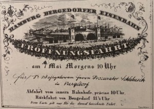 Am 17. Mai 1842 wurde dann ohne große Feierlichkeiten die Bahn Hamburg-Bergedorf eröffnet, nachdem vorher Züge auf dieser Strecke Notdienst getan hatten.