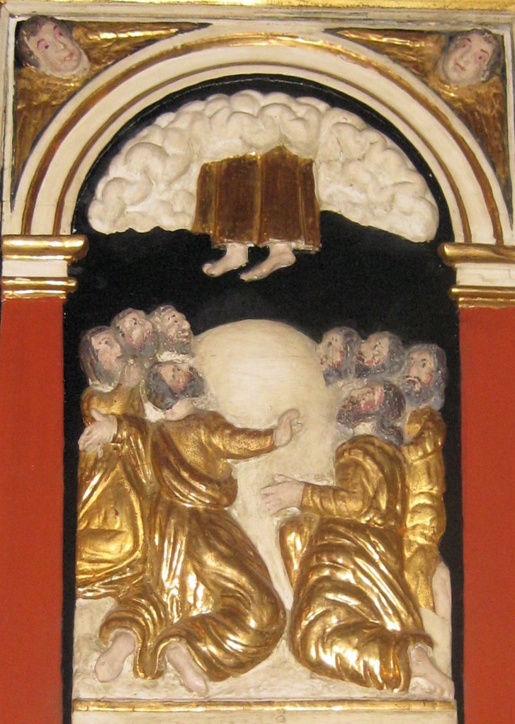 Da wurden einst die rotsamtenen Klingelbeutel, der eine mit der goldbestickten Figur des Petrus, der andere mit der des Paulus durch die Reihen der Gottesdienstbesucher getragen. Heute sind die Beutel nüchterner und ohne festliche Farbe und Apostelfiguren. Heute tun ja diesen Dienst auch nicht mehr „Gotteskastenvorsteheradjunkten“, sondern schlicht und einfach „Kirchenvorstand“ …