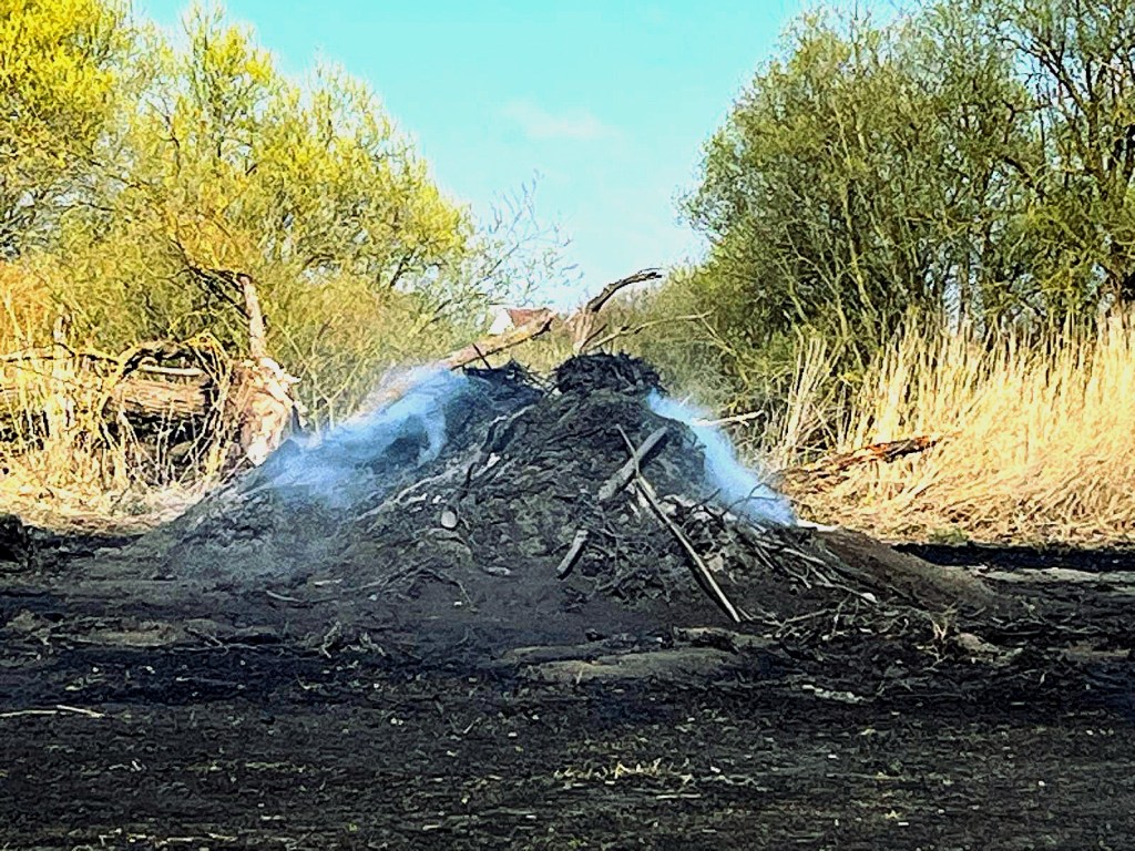 Das Osterfeuer zieht zehntausende Zuschauer an und ist hervorragend organisiert. Der Deich ist gesperrt, der Zustrom koordiniert, Bier und Wurst wird in rauen Mengen an die Zuschauer gebracht, das Feuer wird pünktlich entfacht, für Ordnung ist gesorgt, und Schnapsleichen werden bequem gebettet. Am Ostersonntag gehe ich mit meinem Hund gern in Richtung Feuerplatz und freue mich, dass die Gambrinus bereits alles wieder aufgeräumt haben. Die hatten sicher wenig Schlaf. Das Feuer ist erloschen, aber im Kern sind noch viele Brandnester, die bewacht werden müssen und einen durchdringenden Geruch nach Rauch und Katerstimmung verbreiten.