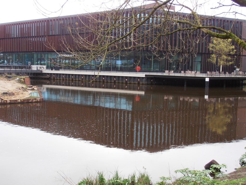 Das KörberHaus ist schon auf dem ersten Blick zu sehen. Raffiniert angebrachte Kupferlamellen an der Fassade, viel Glas, dass Licht ins Innere des Hauses bringt. Sodass auch das Hamburger Schmuddelwetter die Besucher nicht davon abhalten soll, es zu besuchen. Besser noch, es für Alle zu erobern. Es spiegelt sich in der Bille. Doppelt hält eben besser.