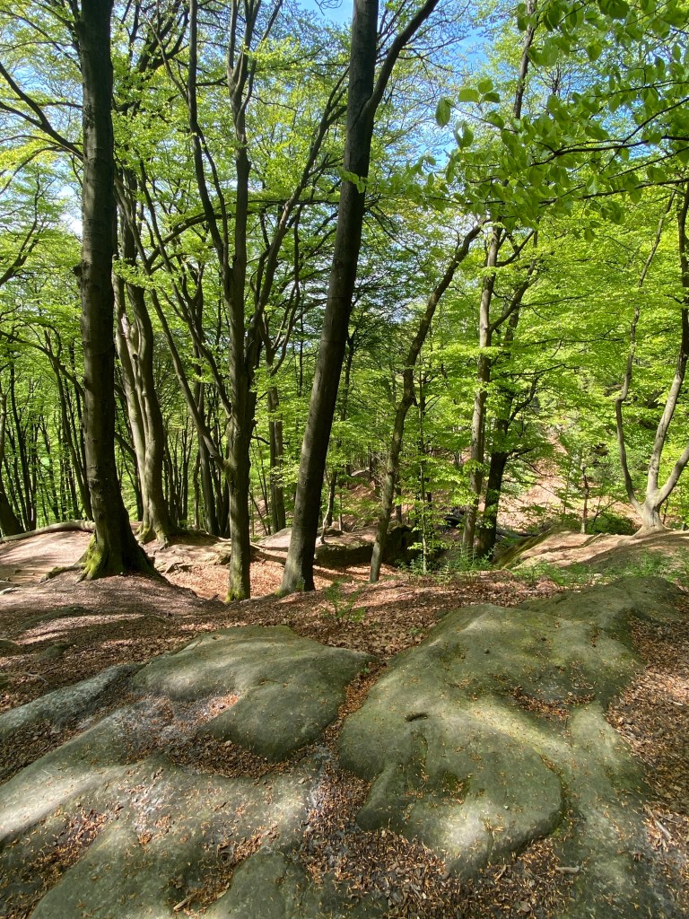 „Ich ging durch einen grasgrü-ü-nen Wald und hörte die Vögelein singen… “ diese Liedzeile fällt mir immer ein, wenn ich durch einen grünen Mai-Wald spaziere und mich dabei des Lebens freue. Wenn dann die Blätter, vom Wind bewegt , leise rascheln und ein Bächlein gluckert, ist die Wald-Musik perfekt.