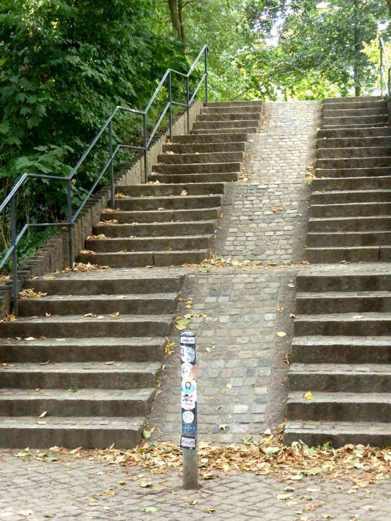 Es ist Mitte Juli: 28° sollen es heute werden. Ach, denke ich, da gehe ich doch mal ins KAIFU, das gute alte Freibad in Eimsbüttel. Um 12:00 Uhr bin ich mit dem Fahrrad da. Es sind schon 25° und plötzlich scheint mir alles viel zu anstrengend: reingehen, umziehen, Platz suchen, gucken wo die Sachen bleiben, wenn ich ins Wasser gehe. Ne, denke ich, ich habe ein Fahrrad, ich fahre jetzt um die Alster!