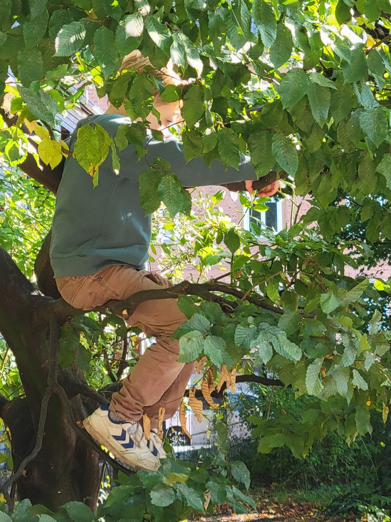 Wer mit Kindern geht, die noch nicht die Schule besuchen, braucht Zeit. Zeit, um anzukommen, wenn ein Ziel gesetzt ist. In diesem Falle: ein Spielplatz. Ach, Zeit haben wir, mein Enkel Janosch und ich. Er kennt den Weg genau. Erst einmal wird auf der Mauer balanciert, dann geschaut, ob die Schnecke von gestern noch an ihrem Platz sitzt. Natürlich nicht, sie will ja auch weiter. Dafür müssen wir eine Spinne betrachten. Sie wartet auf Nahrhaftes. Ob ihr wohl der Magen knurrt? Nach so vielem Netze weben? Wir wissen es nicht. Wir nehmen nun nicht den vorgegebenen Weg, sondern streifen über die Wiese. Hier steht noch ein alter Apfelbaum. Ein sehr alter. Wir überlegen. Es gab hier also mal einen Garten. Scheint lange her zu sein. Endlich erreichen wir unser Ziel. Noch nicht ganz. Plötzlich rennt Janosch voraus, wieder zurück. Ist aufgeregt. Ist empört. “Siehst du dahinten den Wendehammer, Oma?“ „Ja und, was ist mit dem?“ Ich gucke verständnislos. „Und Oma, siehst du irgendwo ein Sackgassenschild?“ Ich verneine es. Das muss gemeldet werden. Unbedingt. Na gut, aber erstmal zum Spielplatz.