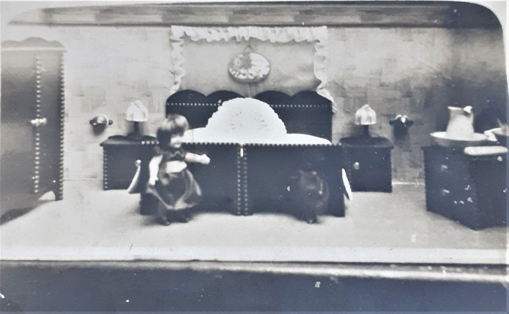 Nur, dass ich später die geretteten Fotos aus dem kleinen Koffer, immer mal wieder ansah. Eines zeigt die Puppenstube meiner Mutter. Und von da an bat ich meine Mutter, doch mal mit mir nach Borgfelde zu fahren. „Vielleicht finden wir ja noch etwas in den Trümmern.“ Nein, sie wollte es nicht. Damals verstand ich ihre Reaktion nicht. Heute, ja heute kann ich es nachvollziehen. So blieb es dabei.