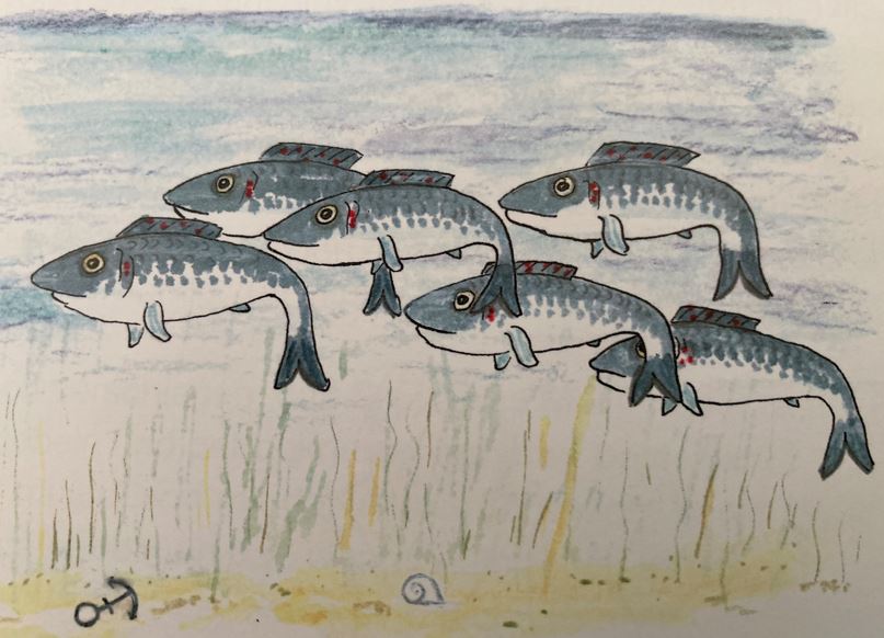 De Fischhöker wiest ehr mit sien Mess de Steed, wo he achtern vun